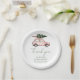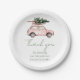 Charmante Urlaubspapier-Teller mit rosafarbenem Wagen, Weihnachtsbaum, Misteloe und Bögen. Ideal für Weihnachts-Party, Ansammlungen und Winterfeiern.