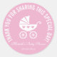 Rosa Babydusche Gastgeschenk Aufkleber mit niedlicher Kutsche / Kinderwagen. Neutrales Design bedankt sich bei den Etiketten mit der passenden Hintergrundfarbe, d.h. weich gelb, grau, lila, hellblau oder gürtelfarben pink. Geeignet für Jungen und Mädchen. Adorable Babywickler / Buggy-Design mit niedlichen Herzen. Auch praktisch als Babydusche Umschlag Aufkleber / Dichtungen.