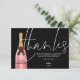 Pink Champagne Flasche Script Schwarzes Brautparty Dankeskarte