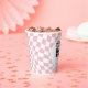 Rosa Schachbrettmuster präppy Lächeln ein glückliches Babe 1. Geburtstag Papier Tasse.