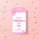 Add a sweet and charming touch to your Valentine gifts with this “Happy Valentine’s Day!” gift tag. Designed with a soft pink checkered background, it features a white wavy shape at the top where details are highlighted in pink text. Delicate pink ribbons accent the top left and bottom right corners, while a lovely pink bow is placed at the center above the sender’s name. Perfect for romantic gifts, friendship treats, Valentine favor bags, and gift wrapping. Personalize with a name for an extra-special finishing touch. VT-018