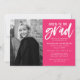 Wir laden Sie ein, den Absolventen mit unserem Applaus für die Graduiertenfeier zu feiern. Die moderne Graduiertenparty lädt das vertikale Foto des Absolventen auf den links ein. "Cheers to the grad" wird in einem weißen, handgeschriebenen Pinselskript mit einem heißen rosa Hintergrund angezeigt. Personalisieren Sie die Vorderseite der Einladung, indem Sie den Namen des Absolventen, den Schulnamen, das Abschluss Jahr und das Party Details. Die Einladung kehrt sich um, um ein abstraktes, scharf rosa-weiße Punktmuster anzuzeigen.