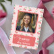 Feiern Sie Ihren Absolventen mit dieser personalisierten Abschluss-Karte mit einem niedlichen, lustigen Rosa Kirschmuster-Hintergrund und einem individuellen Platzhalter für das Foto. Dieses niedliche und trendige Design ist perfekt für Highschool, Uni oder jeden Abschluss geeignet und verleiht den Glückwünschen eine süße Touch. Anpassen Sie einfach mit Ihrem eigenen Text und Bild.