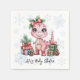 Celebrate your little one with this adorable baby girl shower invitation featuring a sweet pink dinosaur wearing red boots and a festive green and red bow. Surrounded by pine branches and snowy pinecones, this design is perfect for a winter or Christmas-themed baby shower. A charming choice for moms-to-be who love cute and whimsical designs!