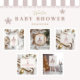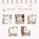 Genießen Sie eine Babydusche im Winter mit diesem sanften und festlichen Design mit handbemalten pastellfarbenen Geschenkboxen, die unter einem mattierten Weihnachtsbaum gestapelt sind. Blütenfarben, goldene Sterne und gemütliche Urlaubsdetails sorgen für ein elegantes und gemütliches Ambiente - ideal, um während der magischsten Jahreszeit ein kleines Hotel zu begrüßen.