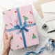 A playful combination of trees, snowflakes, holly, and classic holiday icons in a cohesive pink color palette. Ideal for wrapping paper, gift sets, and seasonal merch.