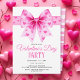 Pink coquette bow and hearts Valentine's Day party Einladung