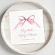 Niedliche Duschservietten mit einer weichen rosa Coquette Bogen Wasserfarbe, "Baby Shower" und der Name der künftigen Mutter in einem eleganten rosa Drehbuch.