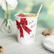 Ein perfekter Weg, um ein Mädchen Dusche mit diesem eleganten rosa Coquette-Bogen Thema zu feiern. Duschen Sie die zukünftige Mutter mit diesem hübschen und rosafarbenen Band und Bugmode Baby Duschpapier Becher, mit einem handgezeichneten ausgeklügelten blütenrosa Bugbezug. Klicken Sie auf 'Personalisieren', um mit der Bearbeitung Ihres Bechers zu beginnen.