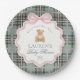 Pink Coquette Bow Bear Plaid Baby Shower Pappteller