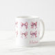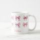 Start your morning with a touch of sweetness! This personalized pink bow mug features a charming pattern of watercolor-style bows in soft shades of blush and rose, plus a custom name option to make it uniquely yours.