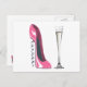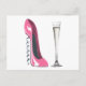 Pink Corkschraube Stiletto Shoe und Champagne Flut Postkarte