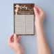 Pink Cowgirl Baby ABC Baby Shower Game Card. Ändern Sie den Wortlaut in das Design. Für weitere Änderungen (Schriftart, Stil des Schriftartes, Entfernen oder Verschieben von Elementen), klicken Sie auf Personalisieren, scrollen nach unten und klicken auf den Link "Bearbeiten mit dem Entwurfswerkzeug". ** Der Holzhintergrund ist in das Design eingebettet, das auf weißem Papier gedruckt werden soll. ** - Karo der Kollektion für alle passenden Designs - HOW TO PLAY: Notieren Sie sich ein Babyelement oder -begriff, der mit jedem Buchstaben des Alphabets beginnt. Der erste Gast, der die Liste beendet hat, gewinnt!