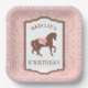 Dieses Cowgirl-Geburtstagsschild-Design verfügt über eine Seilleiste mit einem personalisierten Etikett. In der Mitte des Labels befindet sich ein Pferd mit den Worten "8. Geburtstag". Der Hintergrund ist ein rosa Bandana-Muster. Sie können mit einem Namen und Datum personalisieren. Die perfekte Art, Ihren Tisch für Ihr Cowgirl Party zu kleiden. YeeHaw!