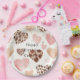 Pink Cream Animal Hearts Gold Sparkle Birthday Pappteller