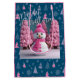 Pink Crocheted Snowman Winter Wonderland Gift Bag Diese hübsche Blue Gift Bag hat einen digital kreierten, Crocheted Snowman mit einem rosa Hut und Schal, und die niedlichen rosa Bäume. Hintergrund mit weißen und rosa Bäumen gemacht. Frohe Weihnachten in Weiß getan.