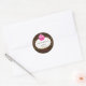 © 2021 Socialite Designs Inc. Diese eleganten rosa Kuchenaufkleber mit braunem Damast-Hintergrund sind ein wunderbares Design, das als Siegel auf Backverpackungen verwendet werden kann.