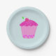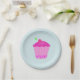 Pink Cupcake mit einer Kirsche oben Pappteller