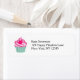 Grafische Kunst / Illustration eines leckeren rosa Kuchens mit Wirbel des Vereisens auf der Oberseite und einer niedlichen, heißen Rosa, Polka Dot Kirsche. Der Boden ist aus grünen und weißen Streifen.