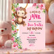 Pink Curious Monkey Safari Theme Birthday Einladung