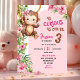 Pink Curious Monkey Savannah Theme Birthday Einladung