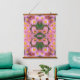 Pink Daisies And Bumble Bee Abstract Wandteppich Mit Holzrahmen