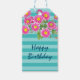 Pink Daisies auf türkisfarbenen Streifen Happy Bir Geschenkanhänger