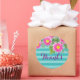 Pink Daisy Blume auf türkisfarbenen Streifen "Dank Runder Aufkleber