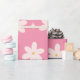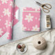 Ein charmantes Muster mit zarten, weißen Gängen, goldenen Mittelpunkten auf einem lebhaften rosa Hintergrund. Die Zugabe von subtilen sternähnlichen Akzenten verstärkt die spielerische und fröhliche Atmosphäre des Designs.
