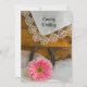 Set ein lässiger und dennoch eleganter Ton für Ihre kommenden Nuptials mit der charmanten Light Pink Daisy und Vintagen Lace Country Western Wedding Einladung. Die familiäre und elegante Ehe zum Thema Pferde oder Ranch bietet ein malerisches Blumenfoto mit einer hellrosa Blüte, Perlenhalskette, rostigem Hufeisen, Vintager, cremefarbener Leinen-Taschentuch und einen weißen Brautschleier mit einem verwitterten braunen Holzfußboden.