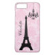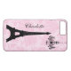 Dieses romantische, rosa iPhone Case ist mit dem Eiffelturm und einem Kristallkronleuchter auf einem rosa Damast-Muster geschmückt, die alle mit Ihrem Namen in einem extravaganten Schriftart personalisiert sind und somit zu einem hübschen Accessoire werden.