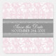 Save the Date für Hochzeiten, in elegantem hellpastellfarbenem Rosa, in grauem und weißem klassischem Blumendstaubmuster, die perfekte Ergänzung zu Ihren Save the Date Kartenumschlägen, die in vielen passenden Hochzeitsprodukten erhältlich sind. Kontaktieren Sie uns für eine Farbänderungsanfrage.