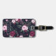 Dunkelblaue Gepäckmarke mit einem Muster aus rosa und dunkelvioletten Rose.