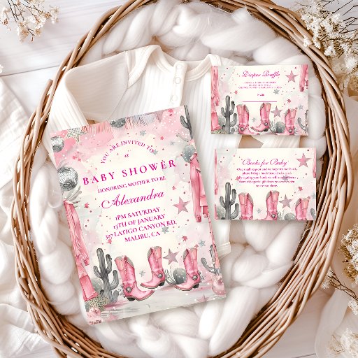 Pink Disco Cowgirl Baby Shower Einladung