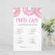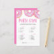 Karo deine Handtasche für die Artikel auf der Liste. Die Person mit den meisten Punkten ist der Gewinner! | Füge diese lustige Spielkarte "Was in deiner Handtasche" zu deiner Babydusche hinzu. Diese Baby Dusche Trivialkarte verfügt über rosa WasserfarbenDonuts mit bunten Sprinklen. Personalisieren durch Hinzufügen von Namen, Ereignis und Datum. Dieses pinkfarbene Donuts-Handyspiel ist perfekt für jede Babydusche oder jedes Thema.