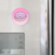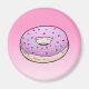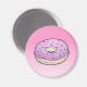 Doughnut mit rosa Verglasung auf einem Circle Magnet.