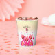 Cute little pink dragon with three heads and pink hearts around for kids birthday party