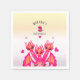 Cute little pink dragon with three heads and pink hearts around for kids birthday party