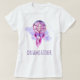 Magischer mystischer T - Shirt. Ein amerikanisches Stammesdesign mit Aquarellfarben. Ein rosafarbener Aquarellbagger mit einem Webbetthoop und zarten Federn, die hinunter hängen. Set auf einem lila Aquarell-Spritzer. Text sagt Träumcatcher, kann aber nach Ihren Wünschen personalisiert oder bearbeitet werden.