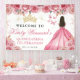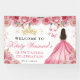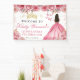 Pink Dress Brunette Princess Floral Quinceanera Banner