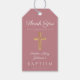 Personalized Pink Dusty Rose Religious Cross Girl Baptism Gift Tags.