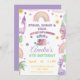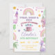 Get ready for some dinosaur fun with this cute pastel girls pink lavender rainbow birthday invitation.