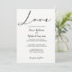 Modernes, schwarz-weißes Schriftzeichen "Liebe". Persönlich mit Ihren Namen und Hochzeitsdetails, dieses elegante Layout und Design Set den Ton für Ihre elegante, romantische und schicke Hochzeit. Mit einem rosa Hinterteil und elegantem Liebe-Skript.