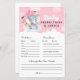 Spielen Sie dieses Baby Predictions and Advice Spiel mit Ihrer Familie und Ihren Freunden im nächsten Baby Shower Party. Lassen Sie Ihre Gäste ihre besten Prognosen und Ratschläge für das neue Baby ausfüllen! Karo in der Pink Floral Elephant Girl Baby Shower Collection für mehr passende Artikel.