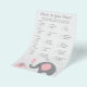 Nutzen Sie unseren rosa und grauen Elefanten mit dem Motto "Was ist in Eurem Handschuhspiel", um dieses einfache und beliebte Duschspiel zu spielen. Die Gäste werden von den Gegenständen, die sie in ihren Taschen/Geldbörsen haben, Karo, und wer die meisten Punkte hat, gewinnt.