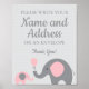 Schauen Sie sich unser rosa und graues Elefantenthemenschild Babydusche an, um die Gäste fragen, sich selbst einen Umschlag zu geben. Geben Sie leere Umschläge und ein paar Stifte und lass unser Zeichen frag Ihren Gästen, ihren Namen und ihre Adresse auf den Umschlag schreiben. Dies wird der Mami helfen, Zeit retten und die Mühe, Adressen zu finden, wenn es Zeit für sie ist, Dankeschön Notizen zu schreiben!
