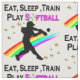 PINK ESSEN, SCHLAFEN, TRAIN, SPIELEN SOFTBALLDESIG STOFF