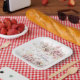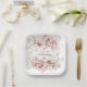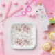 Schöne Teller mit Blumen und Schmetterlingspapieren, die für eine kichkische Geburtstagsfeier entworfen wurden.