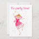Eine Party Einladung mit rosafarbener Fee, streuende Märchenstaub, aus einem Aquarellbild von Judy Adamson. Die Rückseite wird als Leertaste verlassen, damit Sie die Party-Details hinzufügen können.