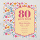 Pink Fiesta 80 Years Loved Birthday Party. Celebrate 80 (or any age), with this colorful fiesta birthday party invitation. Using traditional Mexican floral patterns and vibrant pink and yellow accents. Available as printed and shipped or instant download PDF.
